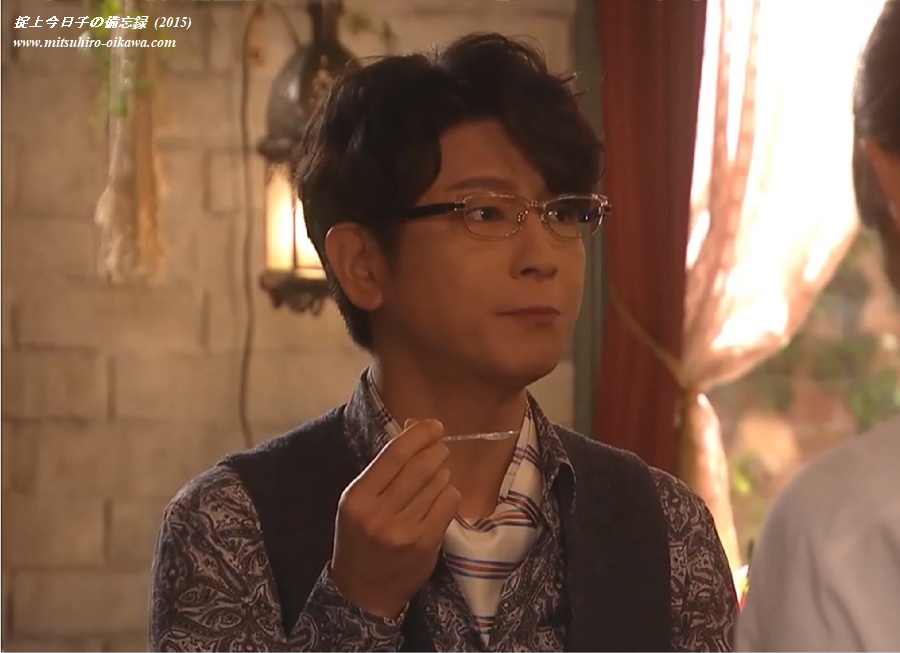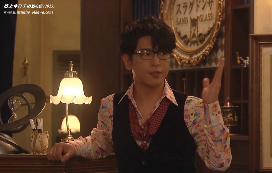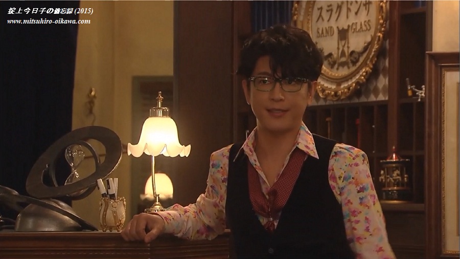 厄介(岡田将生)は今日子(新垣結衣)の部屋の天井に書かれた「お前は今日から掟上今日子 探偵として生きていく」という謎の文字を見て以来、法郎(及川光博)が今日子の過去を知るカギを握る人物と考え、「サンドグラス」について調べることに。